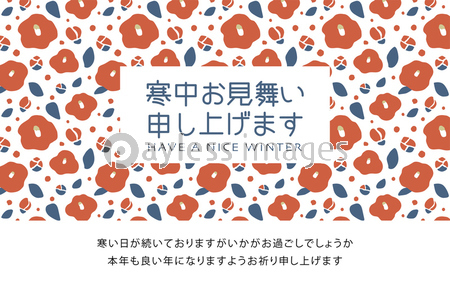 椿の花柄の寒中見舞いテンプレート イラスト素材 フォトライブラリー Photolibrary